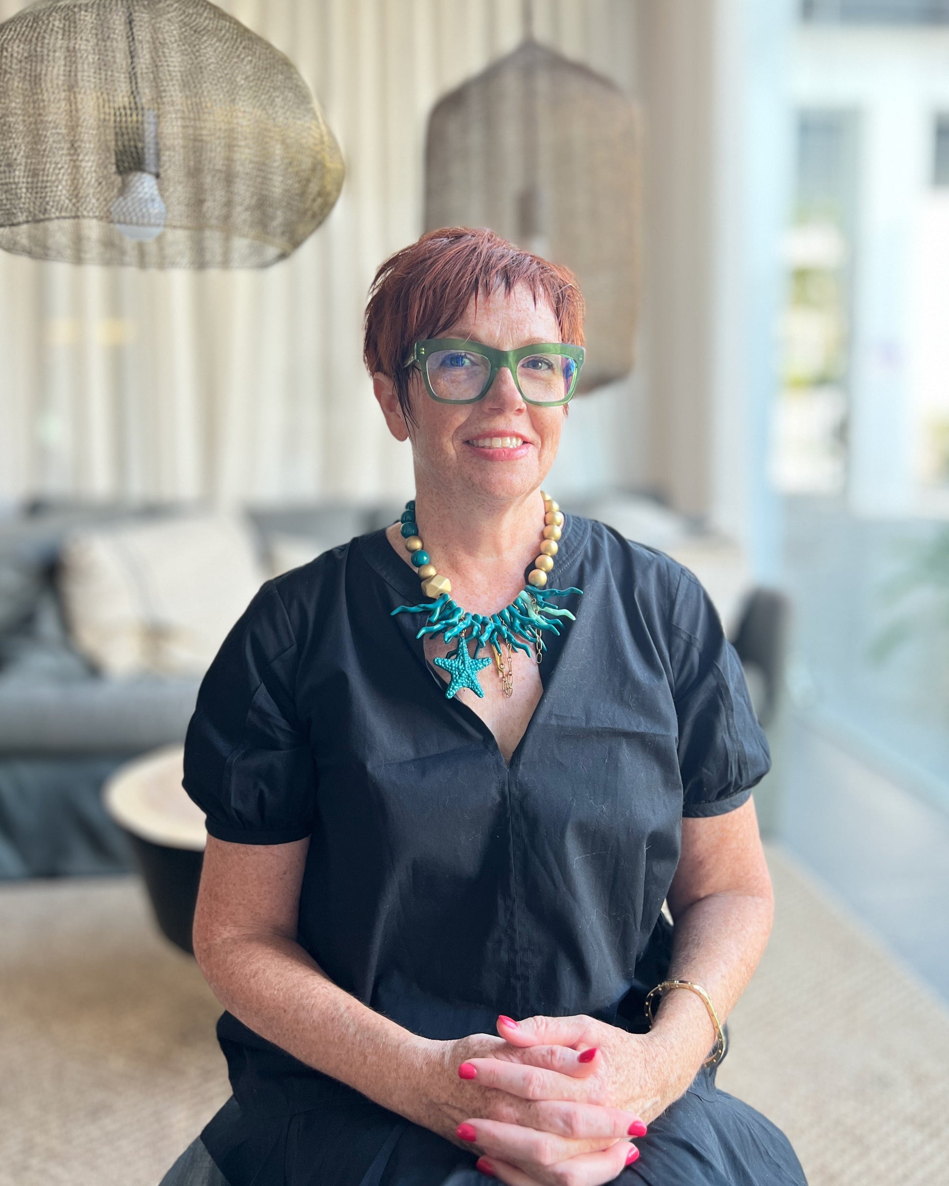 These necklaces feature high quality Italian-made resin beads, coral, and/or starfish in varying colors and patterns to reflect the steadfast strength and enduring beauty of the sea. Ocean's Resolve is a metaphor for confident, ageless women who embody determination and vibrancy. Their bright colors and marine elements symbolize bold self-expression and unwavering spirit.